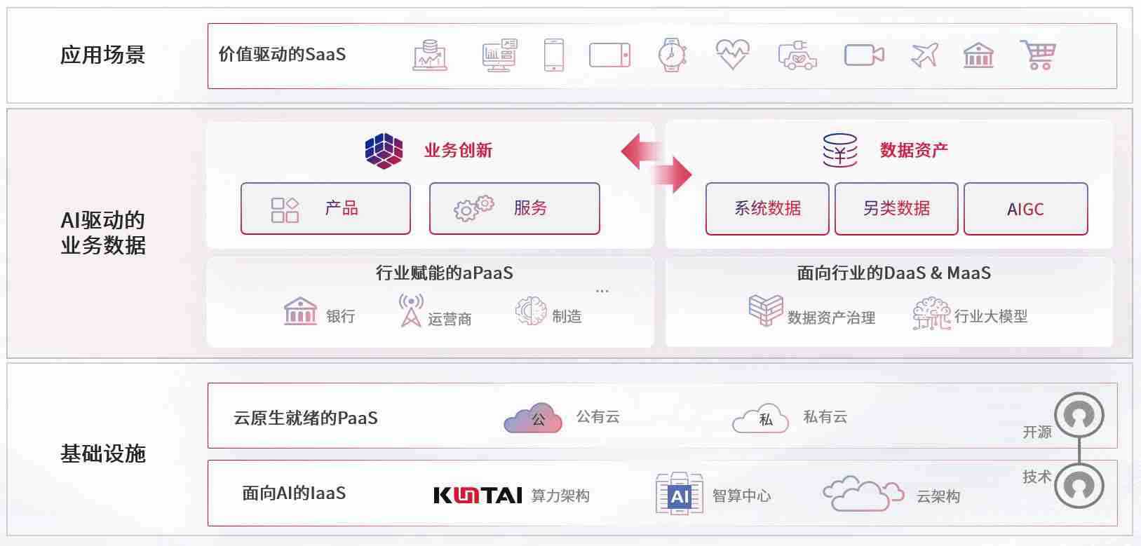 数字时代,,,,围绕企业数字化转型的关键要素,,PG数码开创性的提出数云融合战略和技术体系框架,,着力在云原生、、、、数字原生、、、AI原生和信创产业上架构产品和服务能力,,,,为处在不同数字化转型阶段的快消零售、、、、汽车、、、、金融、、、、医疗、、政企、、、教育、、运营商等行业客户提供泛在的敏捷IT能力和融合的数据驱动能力,,构建跨界融合创新的数字业务场景和新业务模式,,,,助力企业级客户建立面向未来的核心能力和竞争优势,,全面推动社会的数字化、、、智能化转型升级。。